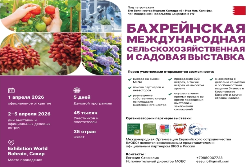 3 марта 2026 года в ТПП РФ состоится официальная презентация Бахрейнской международной сельскохозяйственной и садовой выставки BIGS