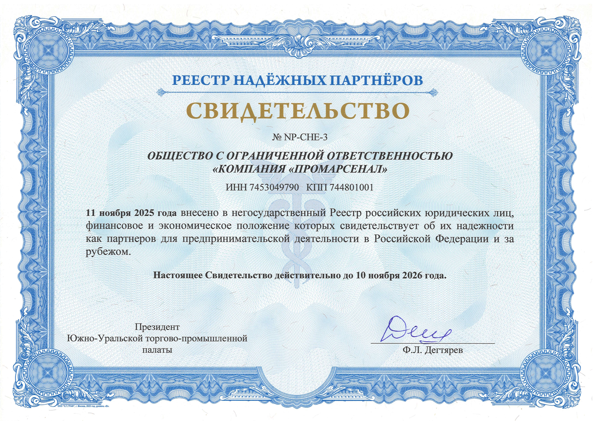 ООО «Компания «ПРОМАРСЕНАЛ» внесена в «Реестр надежных партнеров» ТПП РФ